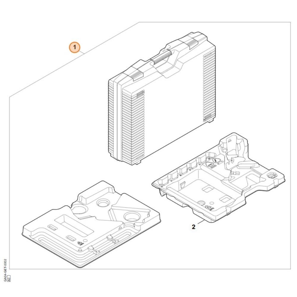 The Case Assembly for Stihl GTA40 Garden Pruners is a genuine Stihl part designed to house and protect the internal components of the pruner. This assembly ensures the pruner operates efficiently by safeguarding against external damage and debris. It includes various parts such as covers, fasteners, and seals, essential for maintaining the pruner's performance and longevity.