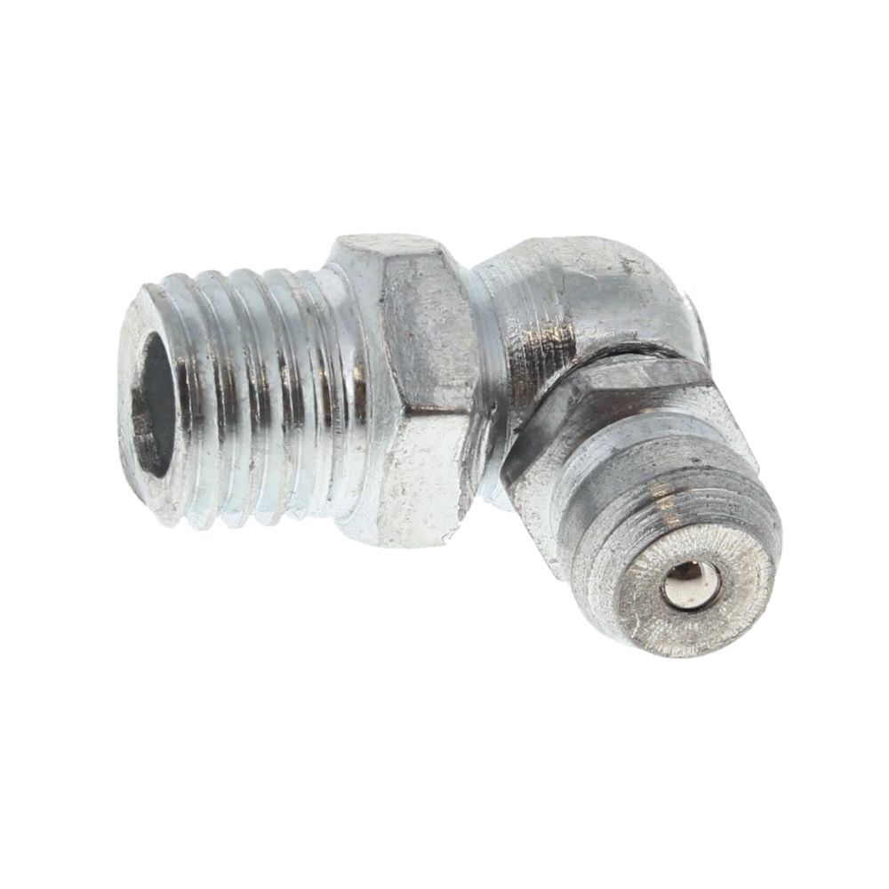 Used on plant, agricultural and garden machinery where a right‐angle fitting is required, including pivot points, suspension and steering linkages, kingpins, bucket pins, mower deck spindles and hinge mechanisms. Suitable for routine servicing in workshops, on-site maintenance and fleet upkeep to deliver grease accurately and reduce wear in high-load or high-vibration assemblies.