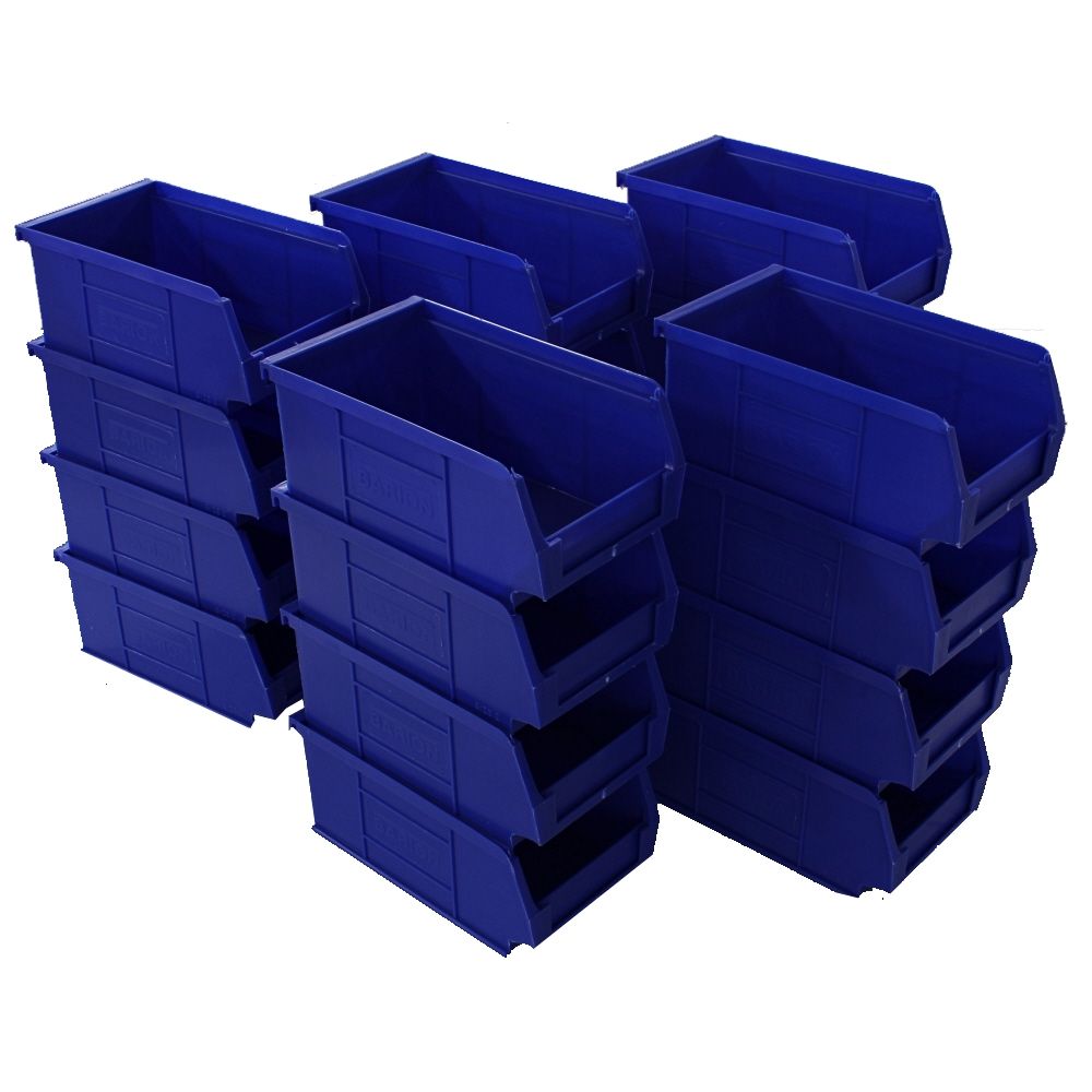 The Blue Plastic Wall Panel Storage Bins Size 2 - Pack of 20 are durable open-front parts bins for organising small items on louvred wall panels. Each bin is moulded from tough polythene for everyday use in workshops, garages, stores and production areas. The integrated rear lip hooks securely into standard louvred panels, allowing quick setup and easy reconfiguration without tools. With a compact footprint and open front, these bins help keep fixings, fasteners, connectors, drill bits and other small consumables visible and within reach. Dimensions per bin are Depth 165 mm (6.5"), Height 75 mm (3.0"), Width 100 mm (3.9"), making them well sized for dense layouts over benches, service stations and parts stores. Supplied as a pack of 20 to build a consistent, space-efficient storage system.