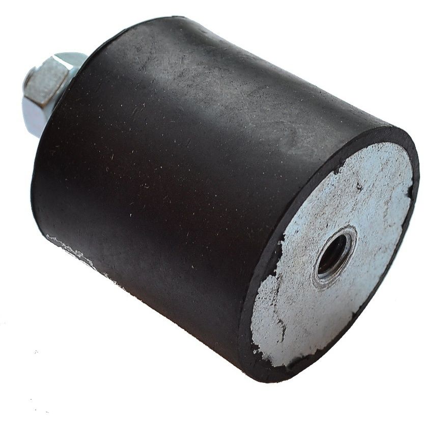 The Rubber Mount Male/Female 50x50mm M10 Thread (MPN: VM50A) is a cylindrical vibration isolation mount designed for general machinery. It has a black rubber body with metal M10 threaded fittings: one male stud and one M10 female insert. The mount absorbs vibration and reduces noise transfer between a machine and its frame or base, helping to protect components and improve user comfort. Sized at 50 mm diameter and 50 mm height (approximately 1.97 in x 1.97 in), it suits compact to medium installations on construction and garden equipment such as generators, pumps, compressors, mowers and chippers. The male/female layout makes alignment simple and provides a secure, repeatable fixing point for brackets, engine plates and panels.