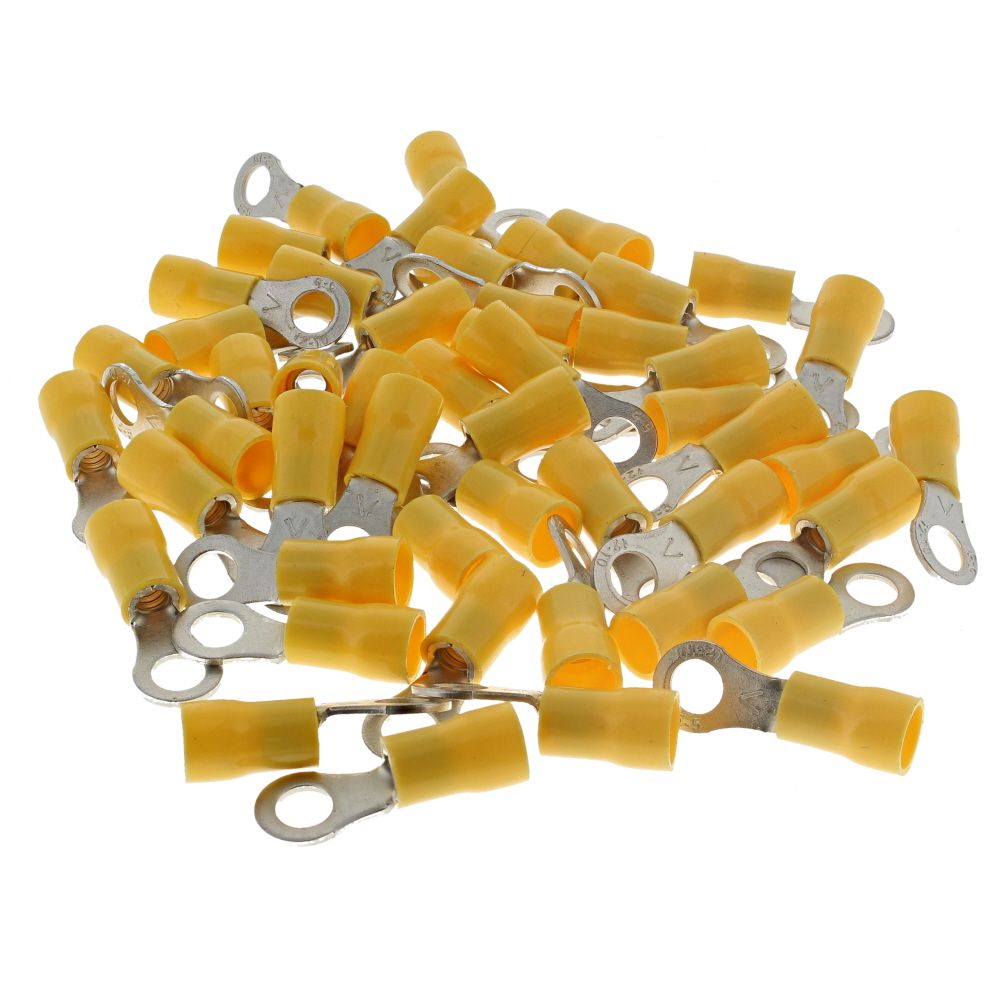 | Key Features | - 5 mm ring ID fits M5 and 2BA studs - Yellow size suits 4.0-6.0 mm² cables - Tinned copper for conductivity and corrosion resistance - Insulated sleeve prevents shorts and provides strain relief - Supplied in a 50-pack for workshop use |