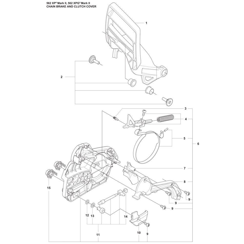 The Chain Brake and Clutch Cover Assembly for the Husqvarna 562XP Mark II Chainsaw is designed to enhance safety and performance. This assembly includes key components such as the chain brake mechanism and clutch cover, which help protect the user and ensure efficient operation. Genuine Husqvarna parts ensure compatibility and reliability for your chainsaw.