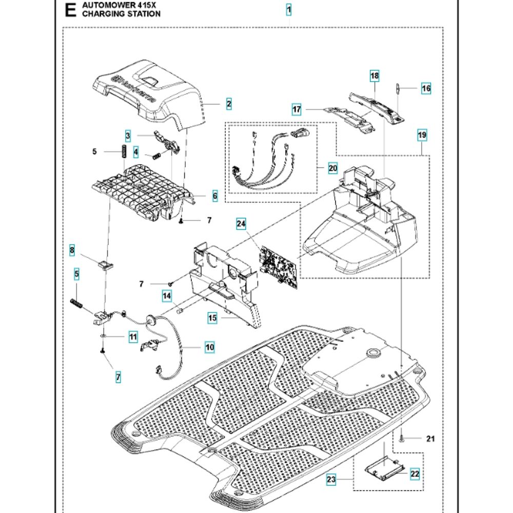 The Charging Station Assembly for the Husqvarna Automower 415X ensures efficient recharging of your robotic mower. This assembly includes essential components to maintain optimal performance and reliability. Genuine Husqvarna spare parts are available to support the longevity and functionality of your Automower, ensuring it remains ready for use.