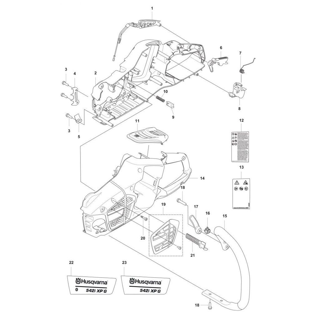 The Chassis Assembly for the Husqvarna 542i XP G Chainsaw is designed to ensure optimal performance and durability. This genuine Husqvarna component supports the battery-powered chainsaw's structure, providing stability and protection. Essential for maintaining the chainsaw's integrity, the assembly includes key parts such as the frame, housing, and mounting brackets, ensuring reliable operation in demanding conditions.
