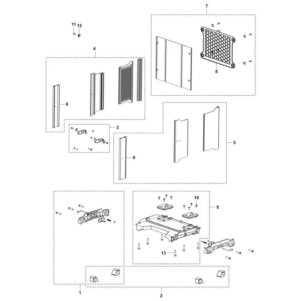 The Chassis Assembly for the Husqvarna A 25 Air Cleaner includes essential components to ensure optimal performance and longevity. This assembly is crucial for maintaining the air cleaner's efficiency, protecting the engine from dust and debris. Genuine Husqvarna parts are available to support routine maintenance and repairs, ensuring reliable operation.