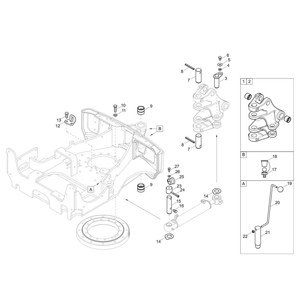 The Chassis Assembly for the Wacker 803-2 Mini Excavator includes key components designed to support the machine's structure and stability. Essential for maintaining operational efficiency, this assembly features parts such as frames, brackets, and mounts. These components ensure the excavator remains robust and reliable during use, providing a solid foundation for various construction tasks.