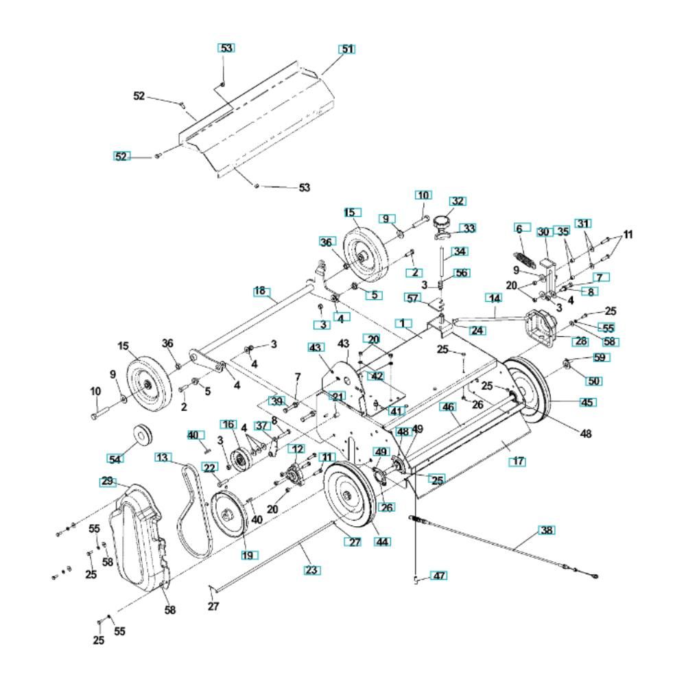 The Chassis, Engine, and Pulley Assembly for the Husqvarna DT22B5NRA Dethatcher includes key components essential for optimal machine performance. This assembly ensures efficient operation by integrating the structural frame, power source, and drive mechanism. Genuine Husqvarna parts are designed to fit precisely, maintaining the reliability and longevity of your dethatcher.