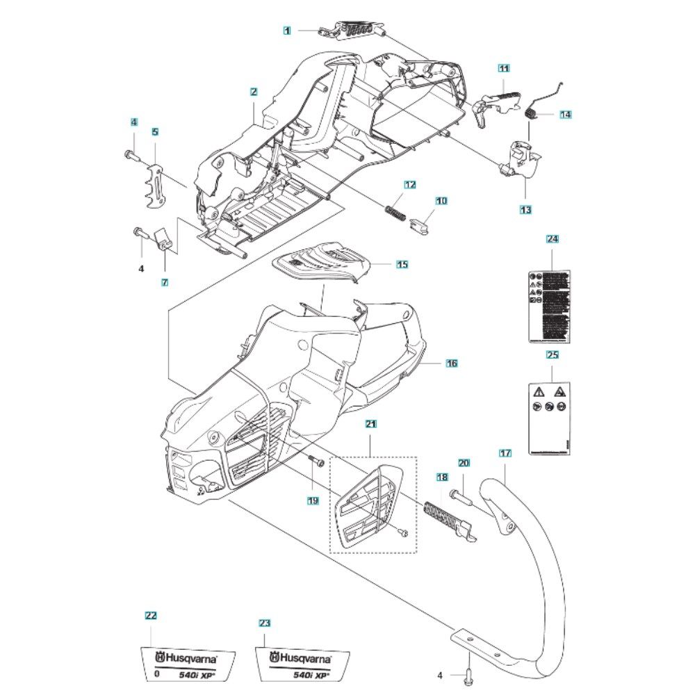 The chassis for the Husqvarna 540i XP Battery Chainsaw provides a robust framework essential for the tool's operation. It supports the engine and other components, ensuring stability and durability during use. Available in both genuine and non-genuine Husqvarna parts, this chassis is designed to fit seamlessly with the chainsaw, maintaining its performance and reliability.
