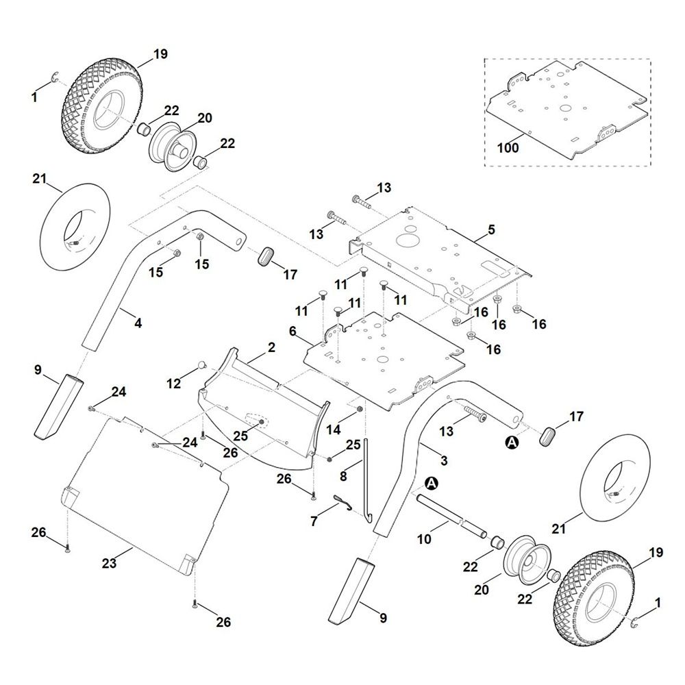 The chassis for the Stihl GH 460.0 Shredder is a crucial component, providing structural support and housing for the machine's internal parts. Designed to withstand the rigours of shredding operations, it ensures stability and durability. This genuine Stihl part is essential for maintaining the shredder's performance and longevity.
