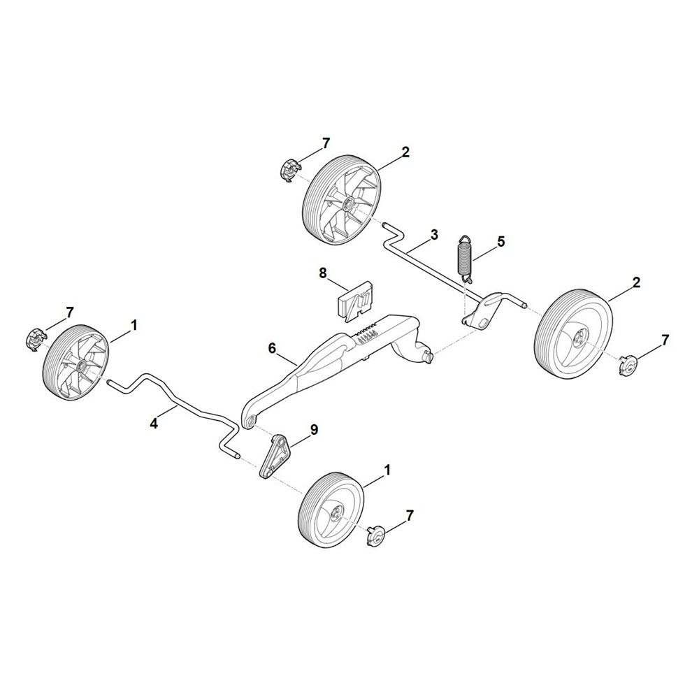 The chassis and height adjustment assembly for the Stihl RMA 239.1 C Cordless Mower ensures optimal performance and ease of use. This genuine Stihl part allows for precise cutting height adjustments, enhancing mowing efficiency. Designed to fit seamlessly, it supports the mower's structure and functionality, contributing to a smooth and reliable mowing experience.