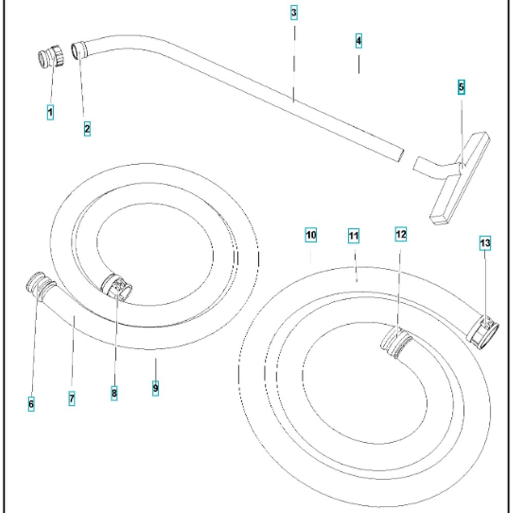 The Cleaning Kit for the HTCD60 Husqvarna Dust Extractor includes genuine spare parts to ensure optimal performance and longevity. Designed for routine maintenance, this kit helps maintain efficient dust extraction, reducing wear and tear on the machine. Components may include filters, hoses, and seals, all tailored to fit the HTCD60 model.