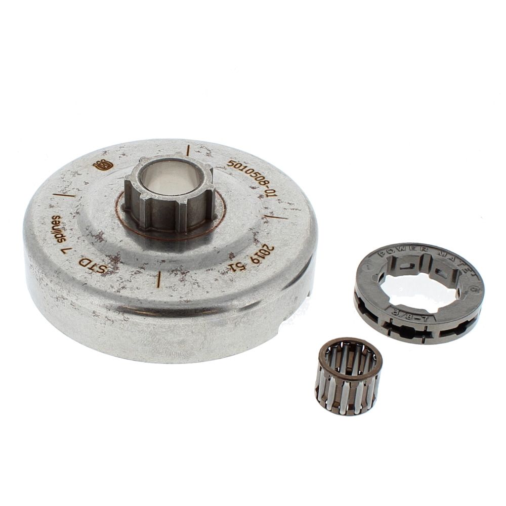 Used to replace a worn or damaged clutch drum on Husqvarna 565 and 572-series saws during routine servicing or fault repair. Ideal when the chain drive feels rough, the chain slips under load, or the drum shows grooves and excess wear. Keeps the saw operating reliably for felling, limbing, snedding, sectioning, storm clearance, and firewood processing.