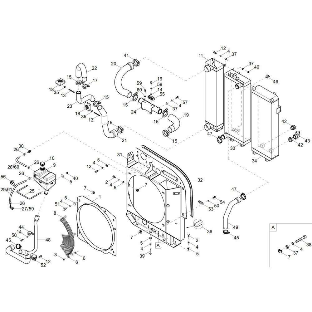The Combi-Cooler (904J-E36TA) Assembly is designed for the Wacker ET145 Mini Excavator, ensuring optimal cooling performance. This assembly includes essential components such as radiators, fans, and hoses, which work together to maintain engine temperature and efficiency. Genuine Wacker Neuson parts ensure reliability and longevity for your excavator.