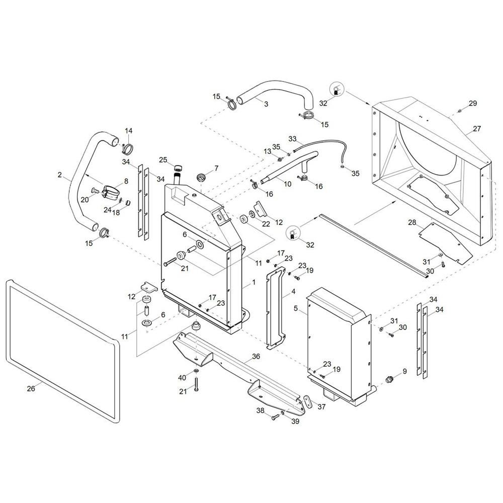 The Combi-Cooler Assembly for the Wacker DV100-2 Dumper is designed to ensure optimal cooling performance and efficiency. This assembly includes components such as radiators, fans, and hoses, which work together to regulate engine temperature and prevent overheating. Essential for maintaining the dumper's reliability and extending its operational lifespan.