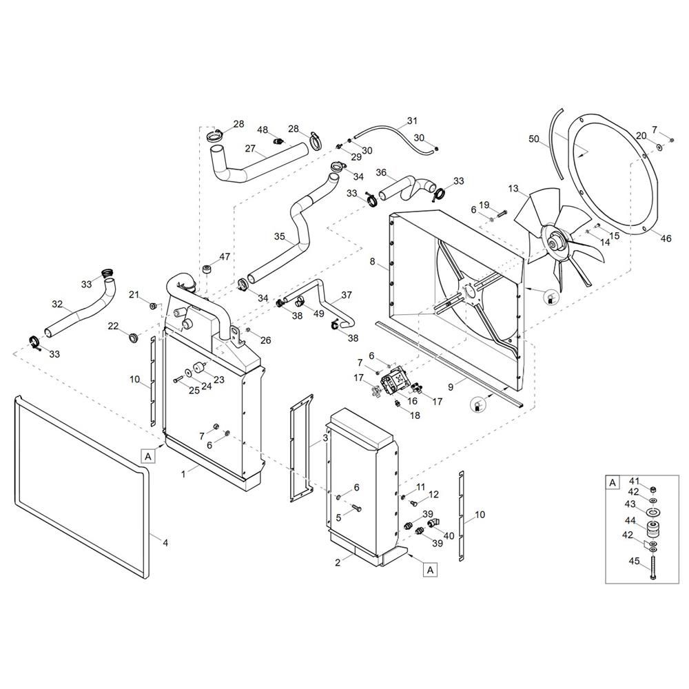 The Combi-Cooler Assembly for the Wacker DV125 Dumper is designed to ensure optimal engine temperature and performance. This assembly includes components such as radiators, fans, and hoses, which work together to dissipate heat efficiently. Essential for maintaining the dumper's reliability, it helps prevent overheating and extends the machine's lifespan.