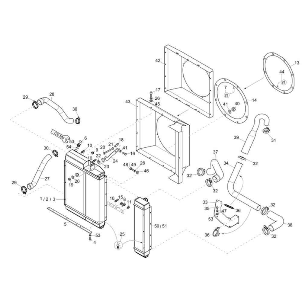 The Combi-Cooler Assembly for the Wacker DW100 Dumper is designed to ensure optimal cooling performance and efficiency. This assembly includes key components such as radiators, fans, and hoses, which work together to maintain the engine's temperature and prevent overheating. Essential for maintaining the dumper's reliability and longevity, it is a crucial part of routine maintenance.
