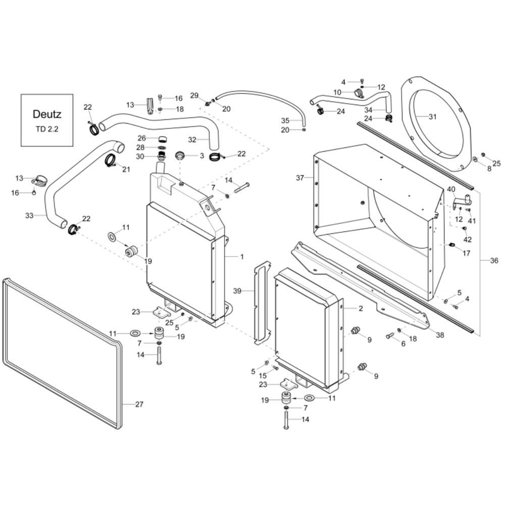 The Combi-Cooler (TD 2.2) Assembly is designed for the Wacker DW60-2 Dumper, ensuring optimal cooling performance. This assembly includes essential components to maintain the dumper's efficiency and reliability. Genuine Wacker Neuson parts are used to ensure compatibility and durability, supporting the machine's operation in demanding environments.