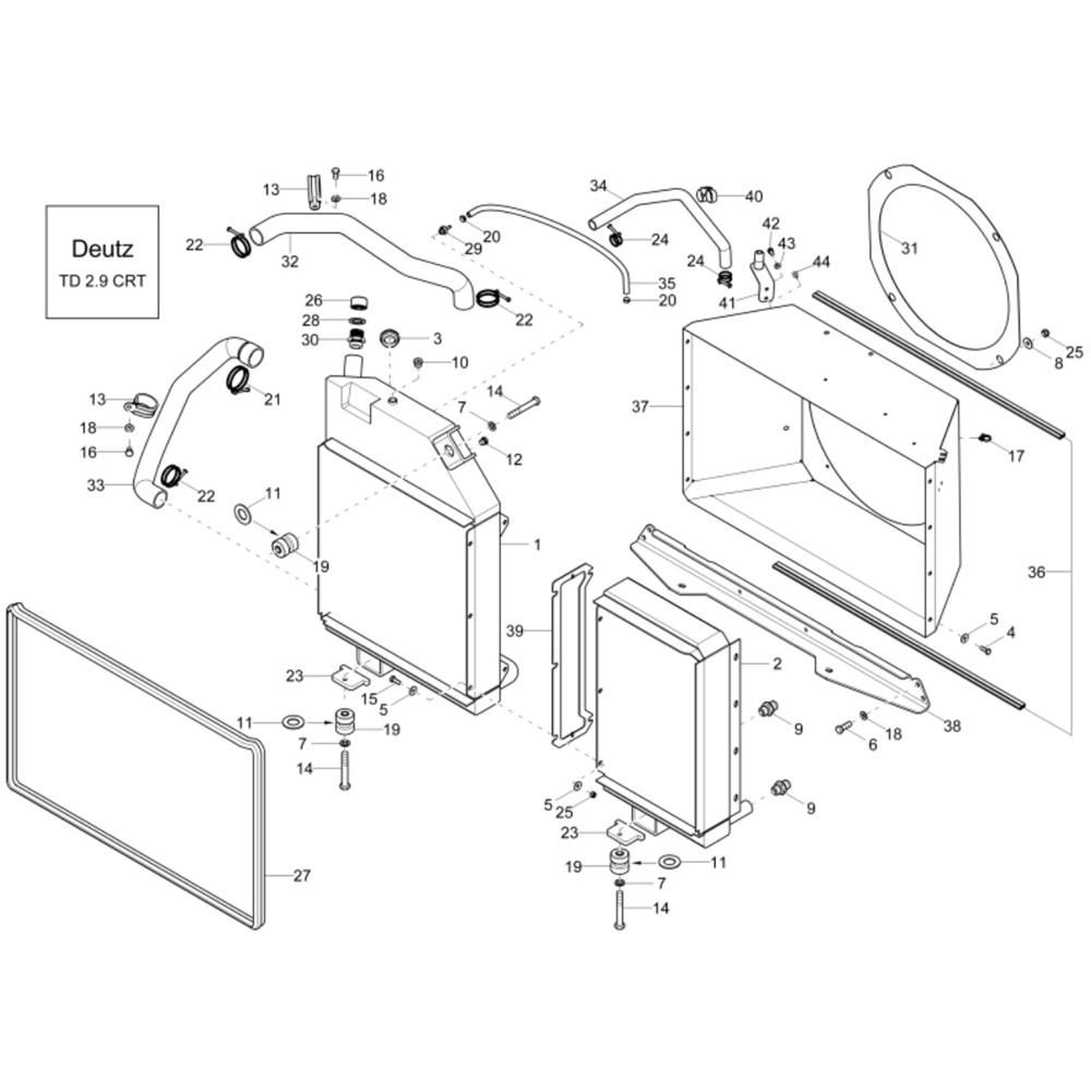 The Combi-Cooler (TD 2.9) Assembly is designed for the Wacker DW60-2 Dumper, ensuring optimal cooling performance. This assembly helps maintain engine temperature and efficiency, crucial for heavy-duty operations. It includes components like radiators, fans, and hoses, all essential for effective heat dissipation. Genuine Wacker Neuson parts ensure compatibility and reliability.