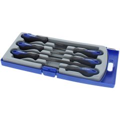 The Draper Combination Open/Ring Chrome Vanadium Spanner, 6 mm, is a compact hand tool for tightening and loosening hex fasteners in small assemblies. Made from chrome vanadium steel for strength and wear resistance, it combines an open-end jaw for quick placement with a ring end for a secure drive on stubborn fixings. The corrosion‐resistant finish helps it stand up to workshop, site, and mobile service use. Ideal for maintenance on construction and garden machinery, automotive components, bicycles, and small engines, it offers precise control where space is tight. The 6 mm sizing suits smaller bolts and nuts commonly found on housings, clamps, linkages, and control hardware. Manufacturer Part Number (MPN): 84737.