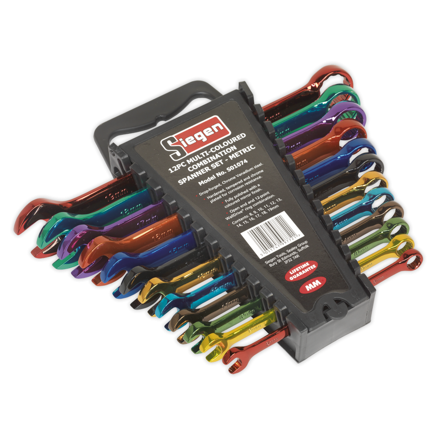 - Multi-coloured, drop-forged, Chrome Vanadium steel combination spanners.
