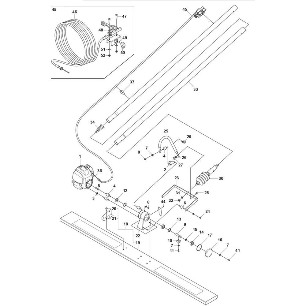 The Complete Assembly for the Husqvarna BV 20G Screed includes all necessary components to ensure optimal performance in concrete levelling tasks. This genuine Husqvarna assembly is designed to maintain the screed's efficiency and durability. Typical components may include drive belts, engine mounts, and vibration dampeners, all crucial for smooth operation.