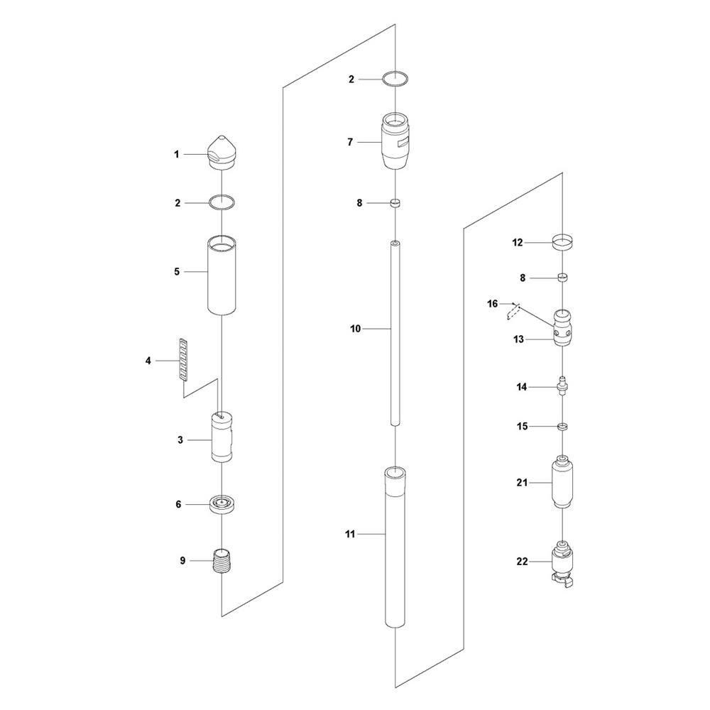 The Complete Assembly for the Husqvarna PV 27 Poker includes essential components to ensure optimal performance and longevity. Designed for effective concrete vibration, this assembly helps maintain the machine's efficiency. Key parts may include gaskets, springs, and levers, all crafted to meet Husqvarna's high standards.