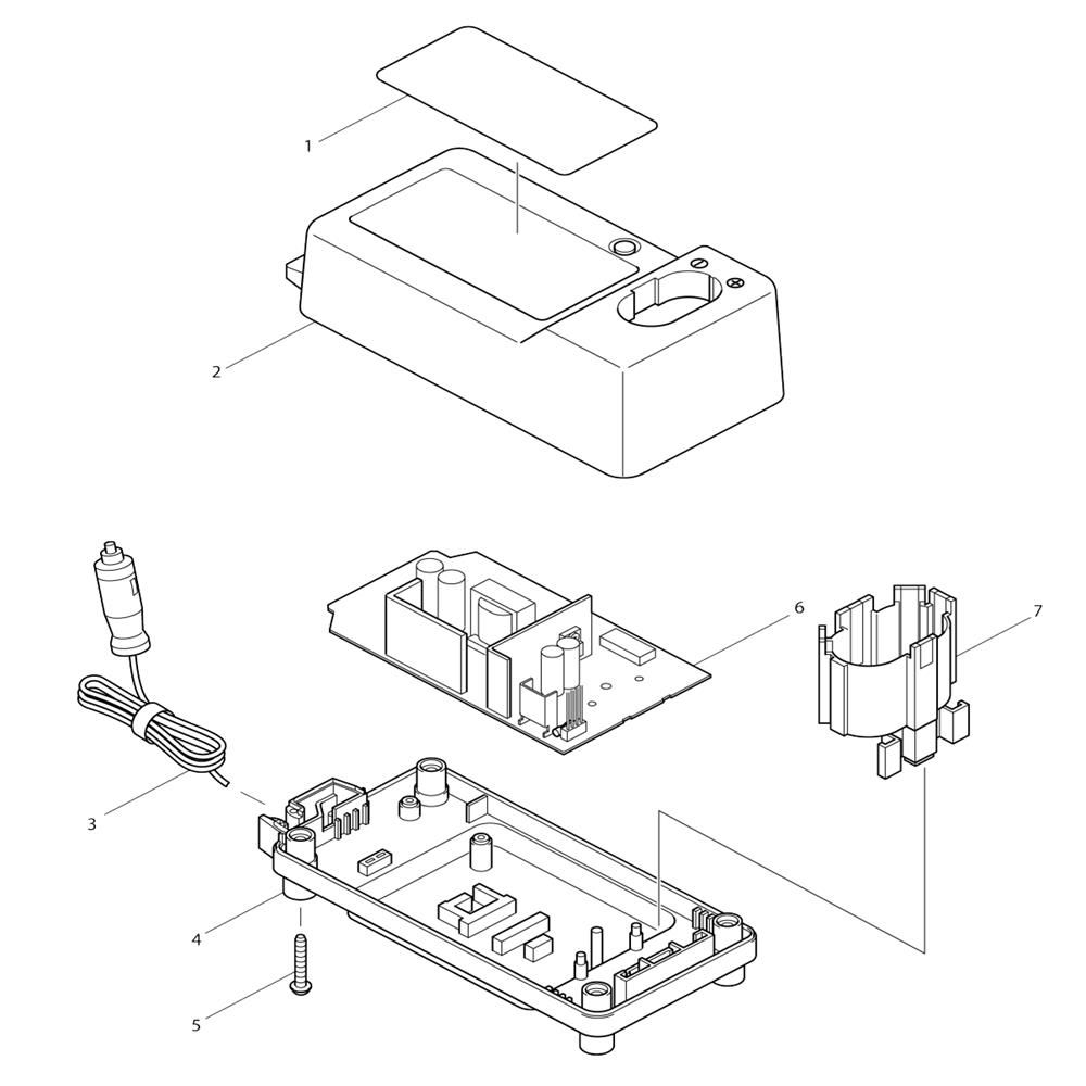 The Complete Assembly for the Makita DC1822 Battery Charger includes essential components to ensure efficient charging and long-term reliability. This assembly is designed to maintain optimal performance of the charger, safeguarding battery health and longevity. Components typically include connectors, circuit boards, and housing parts.