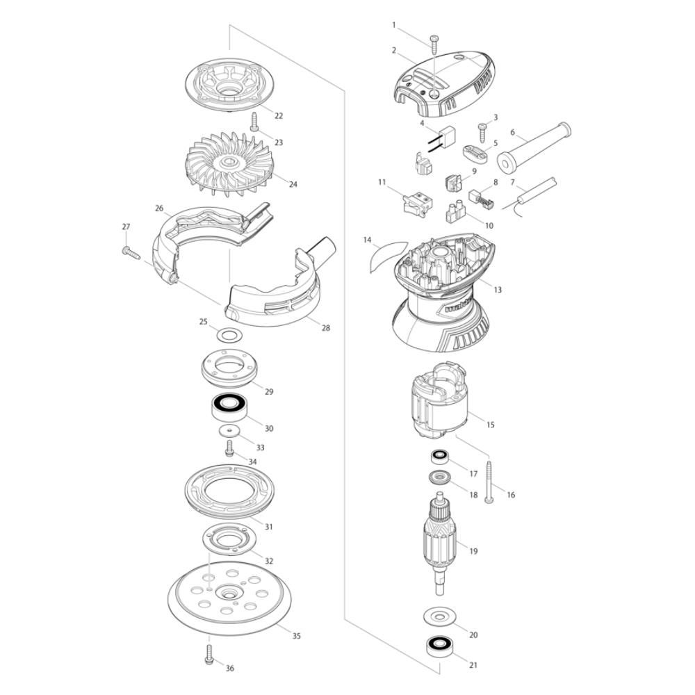 The Complete Assembly for the Makita MT924 Sander includes all necessary components to ensure optimal performance and longevity. This genuine Makita assembly is designed to maintain the sander's efficiency and reliability. Components such as belts, pads, and switches are included to support effective sanding operations.
