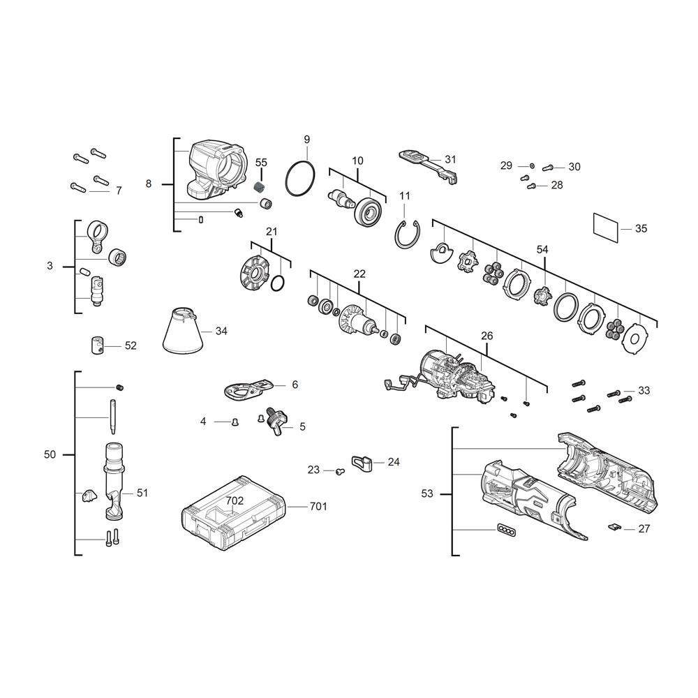The Complete Assembly for the Milwaukee M12FNB16 Nibbler includes genuine parts designed to maintain optimal performance and longevity. This assembly ensures precise metal cutting and efficient operation, featuring components like cutting heads, gears, and housings. Ideal for routine maintenance and repairs, it supports the nibbler's functionality in various metalworking tasks.