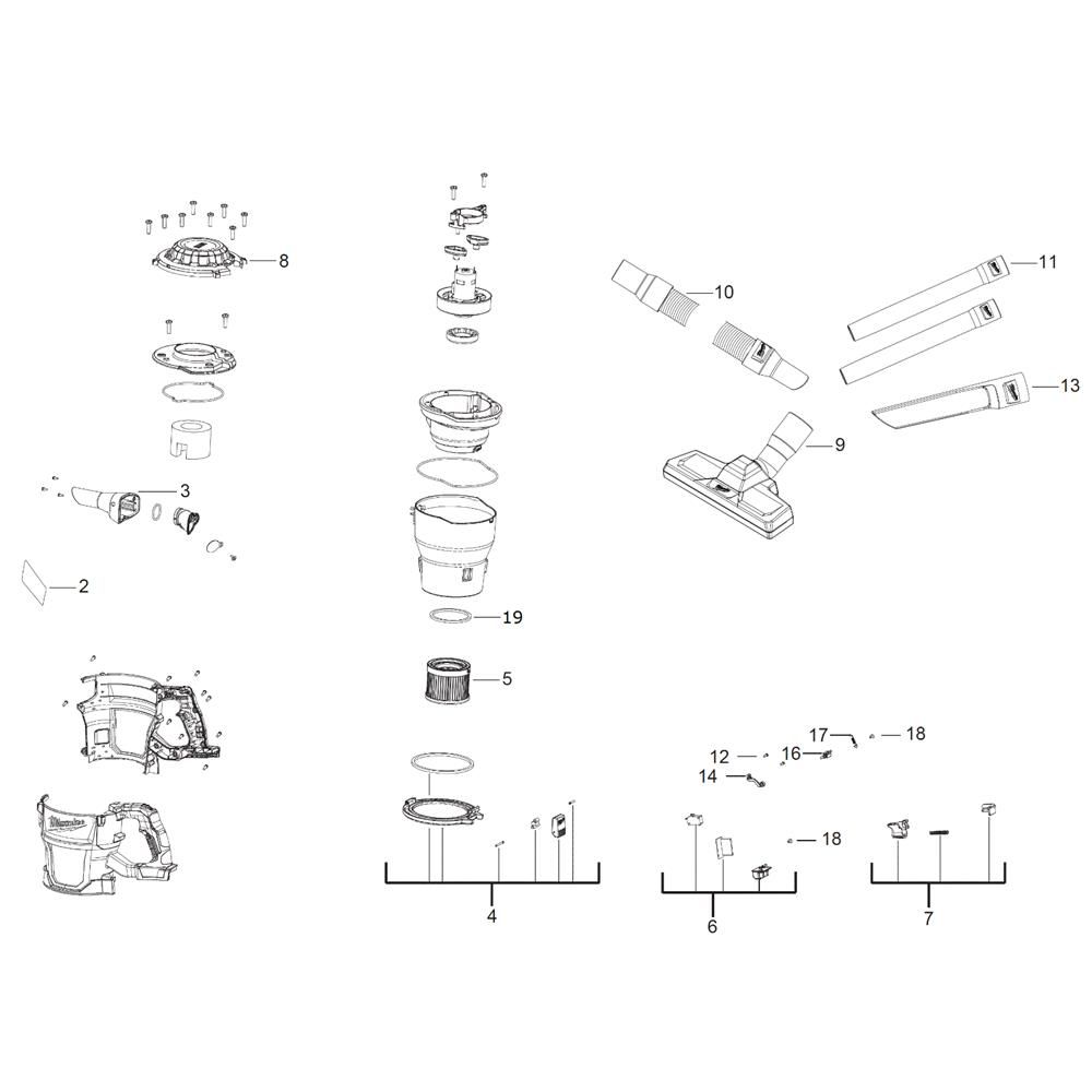 The Complete Assembly for the Milwaukee M18CV Dust Extractor includes essential components to ensure optimal performance and longevity. Designed for effective dust collection, this assembly helps maintain a clean working environment by efficiently capturing debris. Key parts include filters, hoses, clamps, and seals, all tailored to fit the Milwaukee M18CV model.