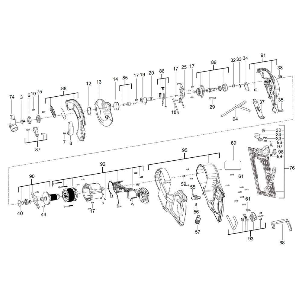 The Complete Assembly for the Milwaukee M18FCSRH66 Cordless Circular Saw includes essential components to ensure optimal performance. Designed for maintenance and repair, this assembly helps maintain the saw's efficiency and longevity. Typical parts include blades, guards, and motor components, all genuine Milwaukee parts.