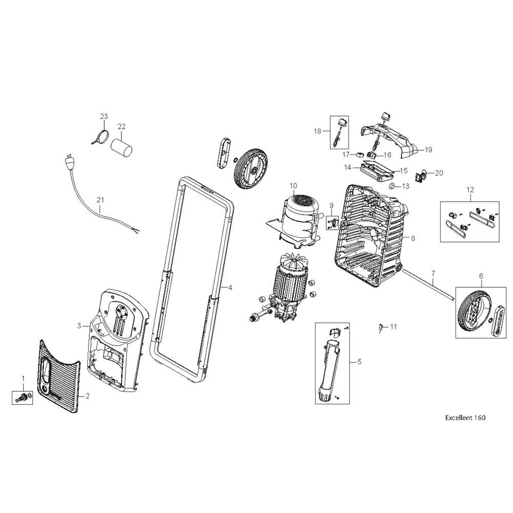 The Complete Assembly for the Nilfisk EXCELLENT 160-10 PA Pressure Washer includes essential components to ensure optimal performance and longevity. Designed for maintenance and repair, this assembly helps maintain high pressure and efficient cleaning. Components may include hoses, nozzles, connectors, and seals, all tailored to fit the Nilfisk model.