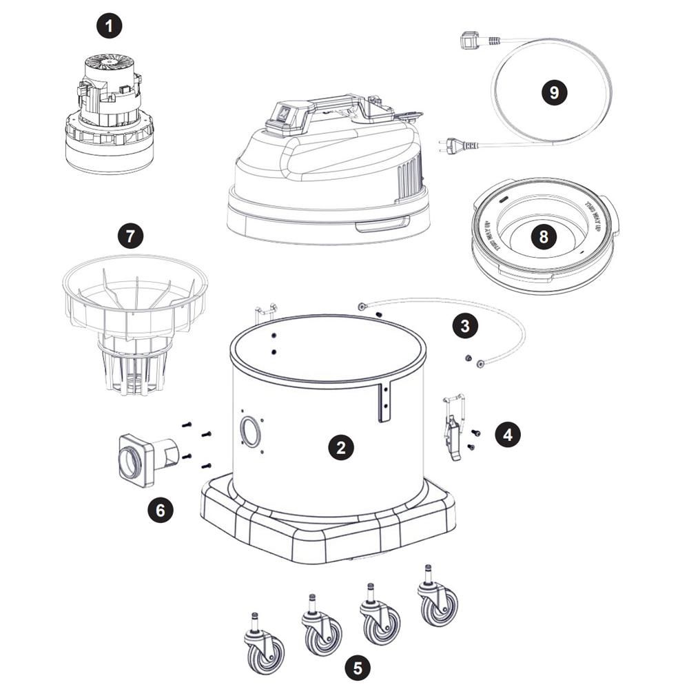 The Complete Assembly for the Numatic CVD570 Vacuum Cleaner includes essential components to ensure optimal performance and longevity. Designed for both genuine and non-genuine Numatic parts, this assembly supports routine maintenance and repairs. Key components may include filters, hoses, and connectors, all crucial for maintaining efficient suction and dust collection.