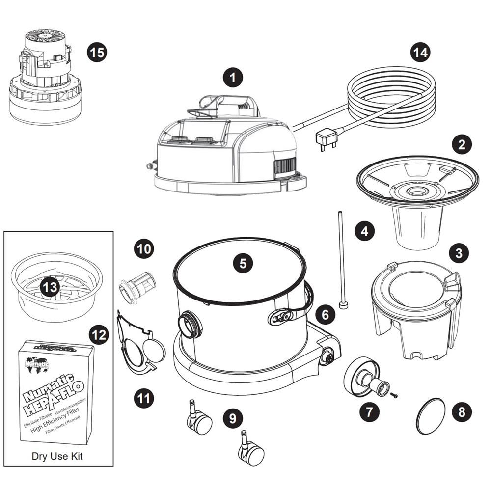 This complete assembly for the Numatic GVE370 Vacuum Cleaner includes both genuine and non-genuine parts to ensure optimal performance. Designed to maintain the vacuum's efficiency, the assembly features components such as hoses, filters, and connectors. Ideal for routine maintenance and repairs, it helps extend the life of your vacuum cleaner.