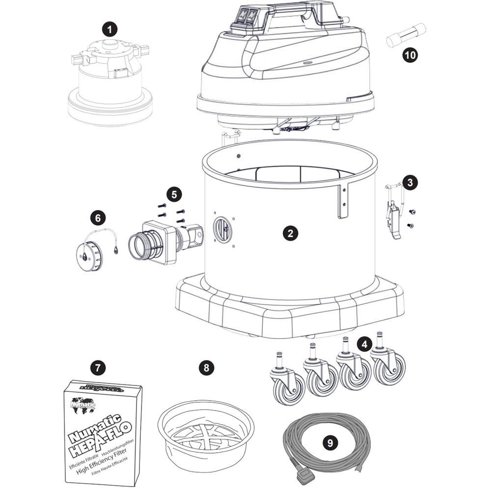 The Complete Assembly for the Numatic NED570 Vacuum Cleaner includes essential components to ensure optimal performance and longevity. Designed for both genuine and non-genuine Numatic parts, this assembly supports routine maintenance and repairs. Key components may include filters, hoses, and connectors, providing comprehensive solutions for efficient cleaning tasks.