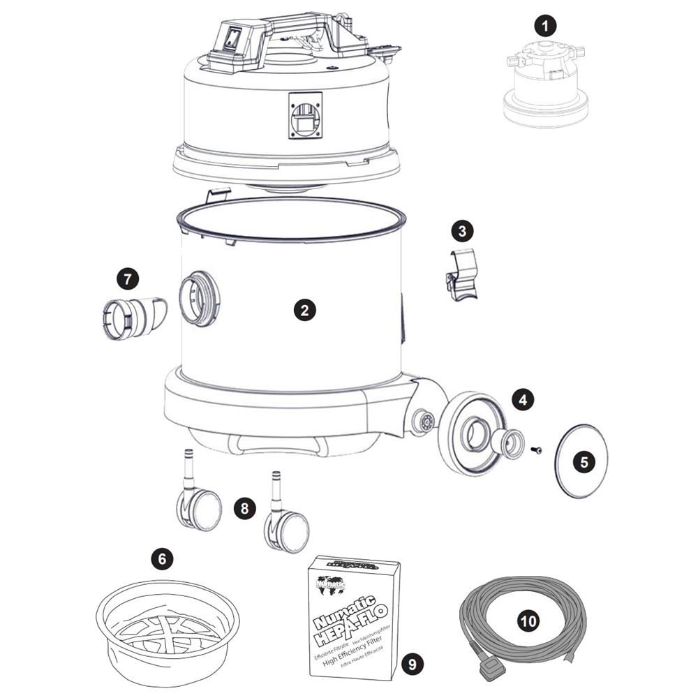 The Complete Assembly for the Numatic NVQ370 Vacuum Cleaner includes essential components to ensure optimal performance and longevity. Designed for routine maintenance and repair, this assembly helps maintain suction power and efficiency. Available parts include hoses, filters, motors, and seals, catering to both genuine and non-genuine Numatic options.