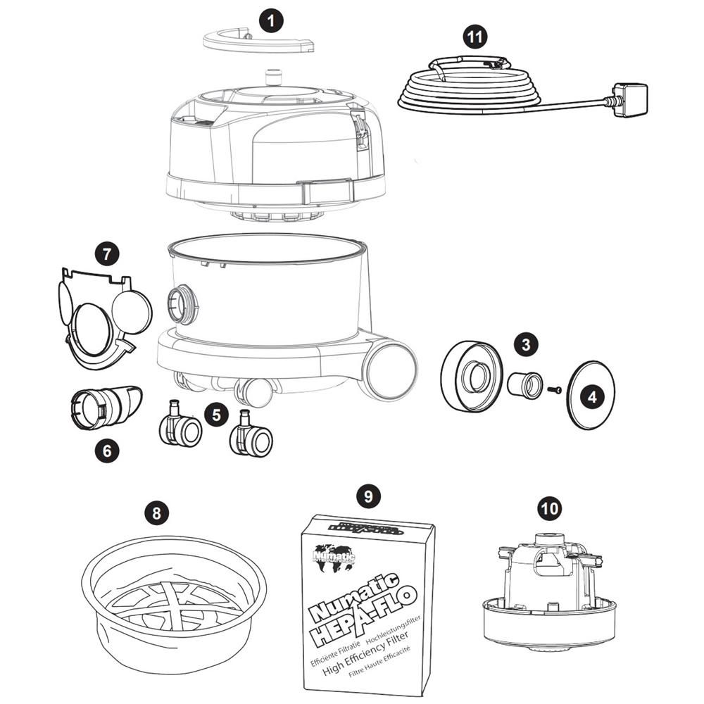 The Complete Assembly for the Numatic PPR240 Vacuum Cleaner includes essential components to ensure optimal performance and longevity. This assembly features both genuine and non-genuine Numatic parts, such as hoses, filters, and motor units, designed to maintain efficient suction and cleaning capabilities. Suitable for routine maintenance and repairs, it helps keep your vacuum cleaner in top condition.