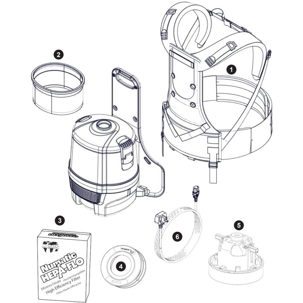 The Complete Assembly for the Numatic RSV150H Vacuum Cleaner includes essential components to ensure optimal performance and longevity. This assembly features both genuine and non-genuine Numatic parts, such as filters, hoses, and connectors, designed to maintain efficient suction and filtration. Suitable for routine maintenance and repairs, it helps keep your vacuum cleaner in top working condition.