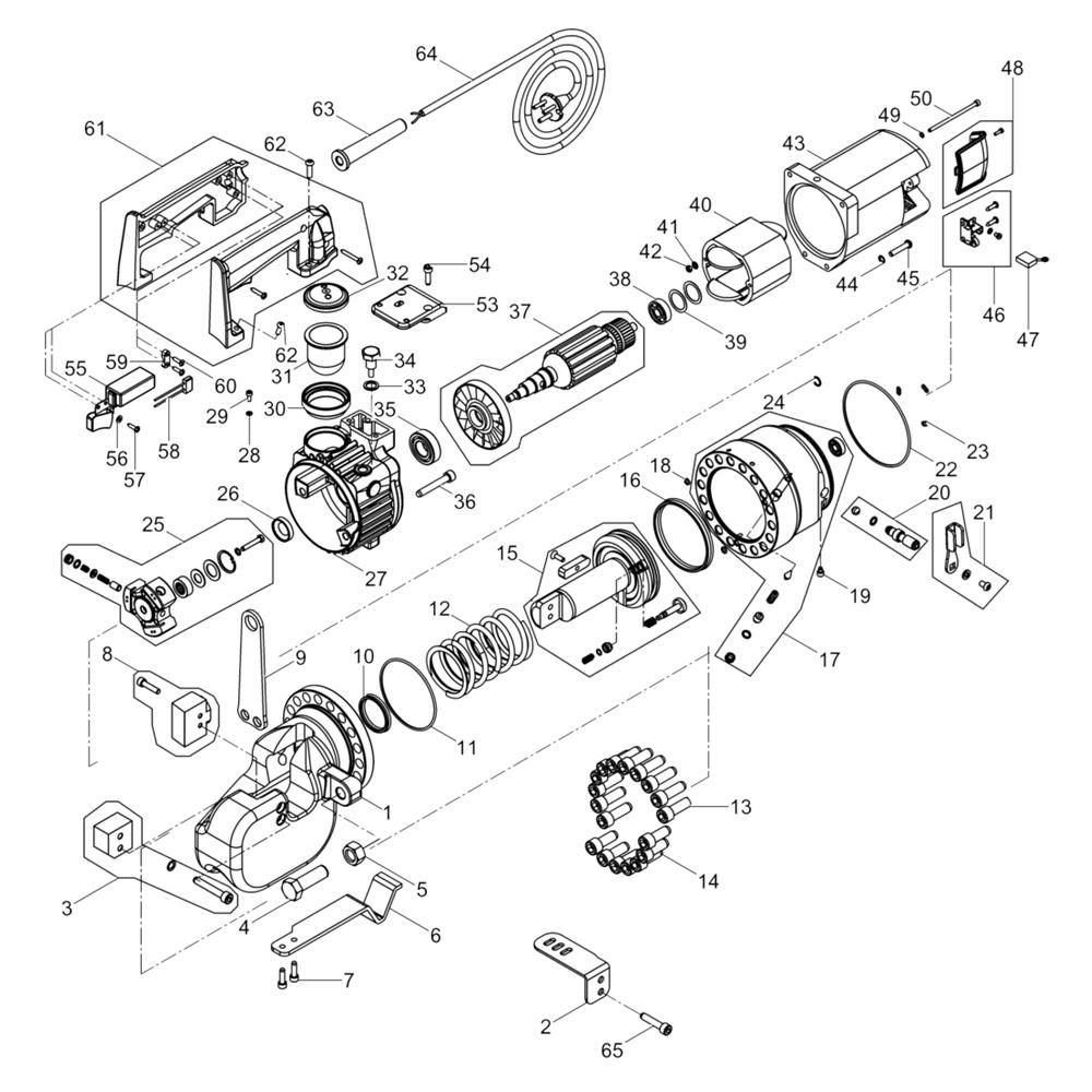 The Complete Assembly for the Wacker RCP-32/115 Rebar Cutter includes essential components to ensure optimal performance and longevity. Designed for precise cutting of rebar, this assembly features genuine Wacker Neuson parts. Key components may include blades, gears, and housing elements, all contributing to efficient operation and maintenance.