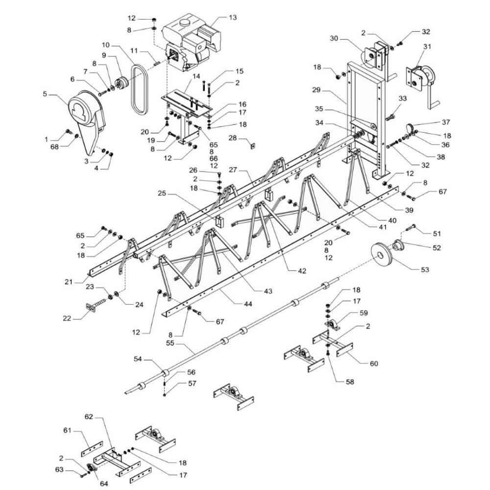 The Complete Assembly for the Wacker SP75 Truss Screed includes essential components to ensure optimal performance and longevity. Designed for precise concrete levelling, this assembly features parts such as drive units, screed sections, and connectors. These components work together to provide a smooth and efficient screeding process, ideal for construction projects requiring high-quality concrete finishes.
