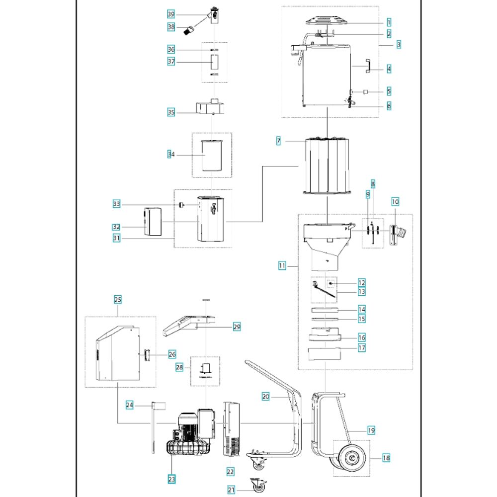 The Complete Assembly for the T8600 Husqvarna Dust Extractor includes essential components to ensure optimal performance and longevity. Designed for efficient dust extraction, this assembly helps maintain a clean working environment by effectively capturing dust and debris. Components may include filters, hoses, clamps, and seals, all tailored for the T8600 model.