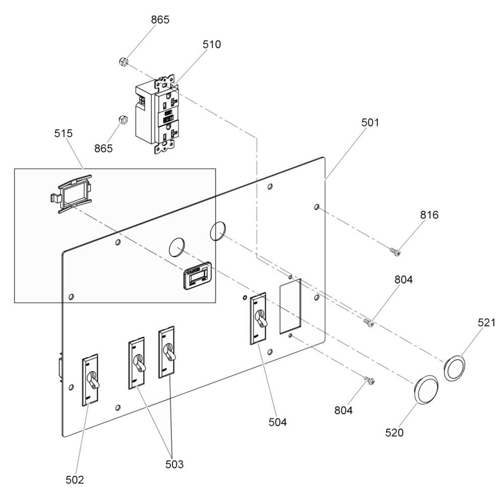 The Control Panel Assembly for the Wacker LTC6L Lighting Tower includes essential components to ensure efficient operation and control. This assembly is crucial for managing the lighting tower's functions, providing reliable performance in various conditions. Components may include switches, circuit boards, and connectors, designed to maintain optimal functionality.