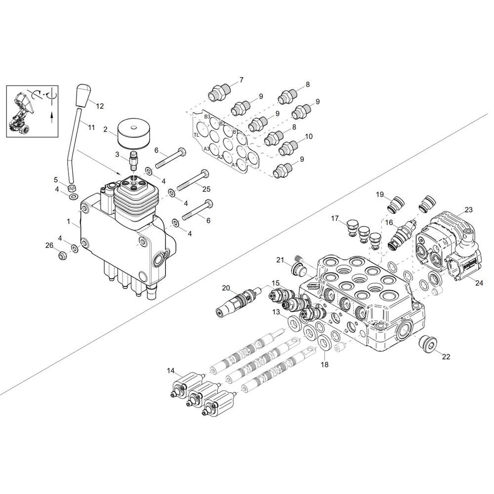 The Control Valve Assembly for the Wacker DW20-2 Dumper is crucial for managing hydraulic flow and ensuring efficient operation. This assembly includes components such as valves, seals, and springs, which work together to control the machine's hydraulic functions. Designed for durability and reliability, it helps maintain optimal performance in demanding conditions.