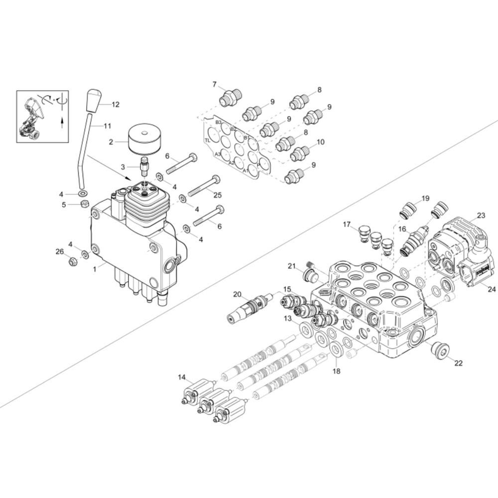 The Control Valve Assembly for the Wacker DW20 Dumper is essential for managing hydraulic flow and ensuring efficient operation. This assembly includes key components such as valves, seals, and springs, which work together to control fluid direction and pressure. Designed for durability and reliability, it supports the dumper's performance in various construction tasks.
