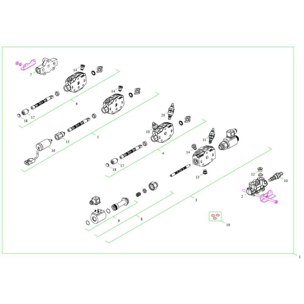 The Control Valve Assembly for the Wacker TH408 Telehandler is crucial for managing hydraulic flow and ensuring precise operation. This assembly includes components such as spools, seals, and springs, which work together to control the movement of the telehandler's arms and attachments. Designed for durability and efficiency, it supports the telehandler's performance in various tasks.