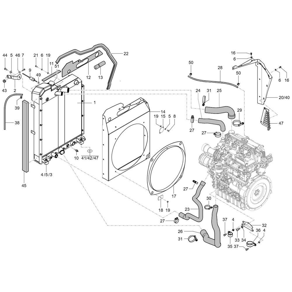 The Cooler Assembly for the Wacker TH627 Telehandler is designed to ensure optimal engine temperature and performance. This assembly includes components such as radiators, fans, and hoses, which work together to dissipate heat effectively. Essential for maintaining the telehandler's efficiency, it helps prevent overheating and prolongs engine life.
