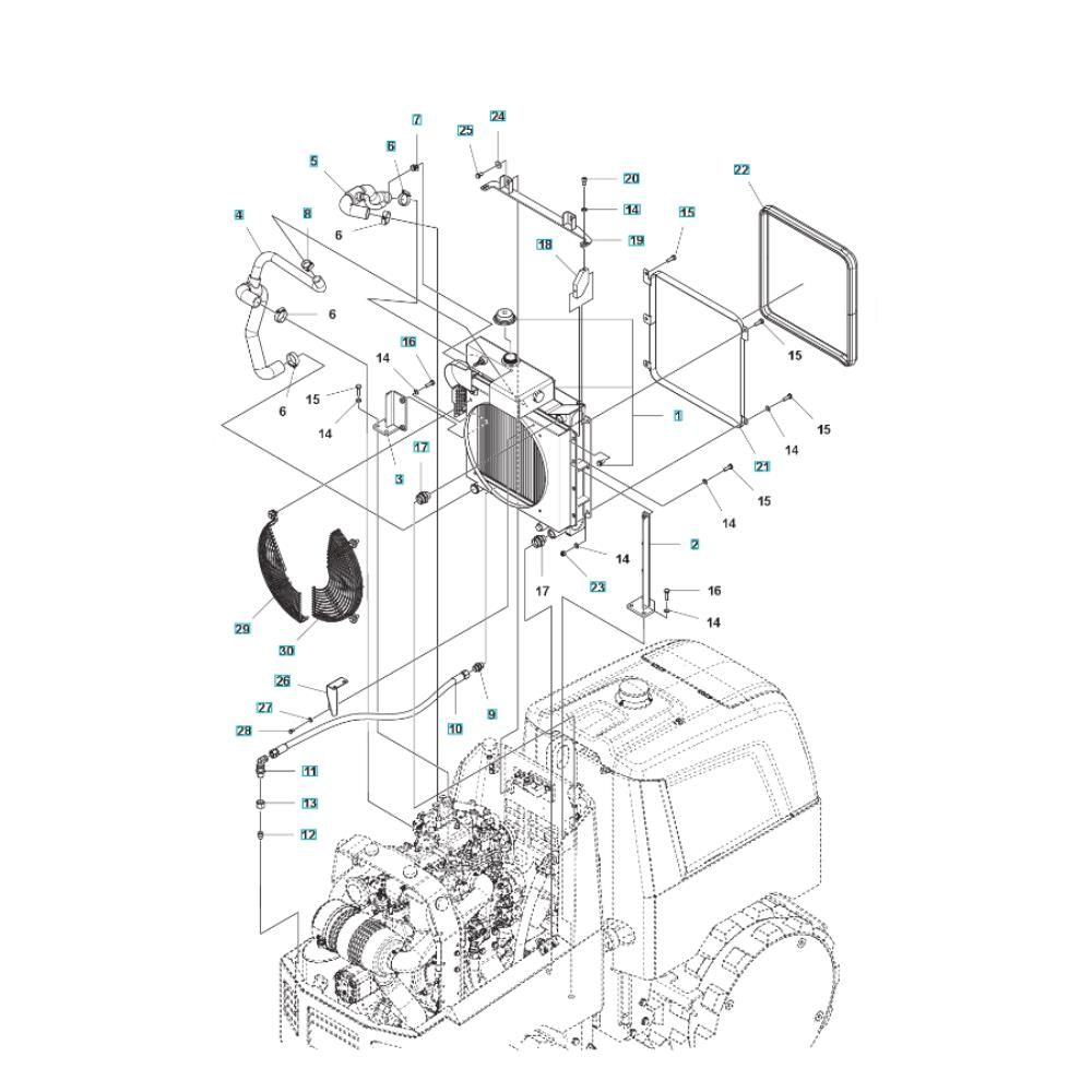 The Cooling System Assembly for the Husqvarna LP 9505 Roller includes essential components to manage engine temperature and ensure optimal performance. This assembly helps prevent overheating and extends the machine's lifespan by maintaining efficient heat dissipation. Components typically include radiators, fans, hoses, and thermostats, all designed to fit seamlessly with the Husqvarna LP 9505 model.