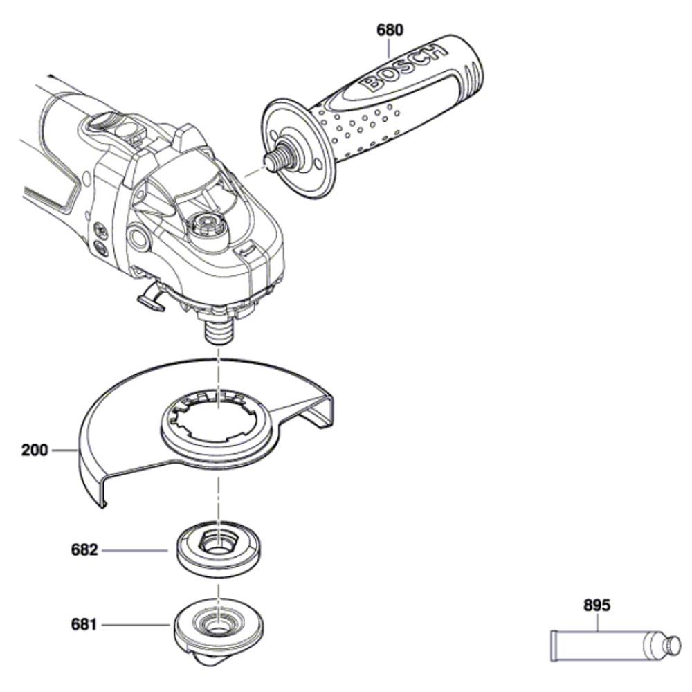 The Cordless Angle Grinder Assembly for Bosch AdvancedGrind 18 includes genuine Bosch spare parts essential for maintaining and repairing your tool. This assembly ensures optimal performance and longevity by providing components like gears, guards, and switches. Designed for precision and durability, it supports various grinding and cutting tasks.