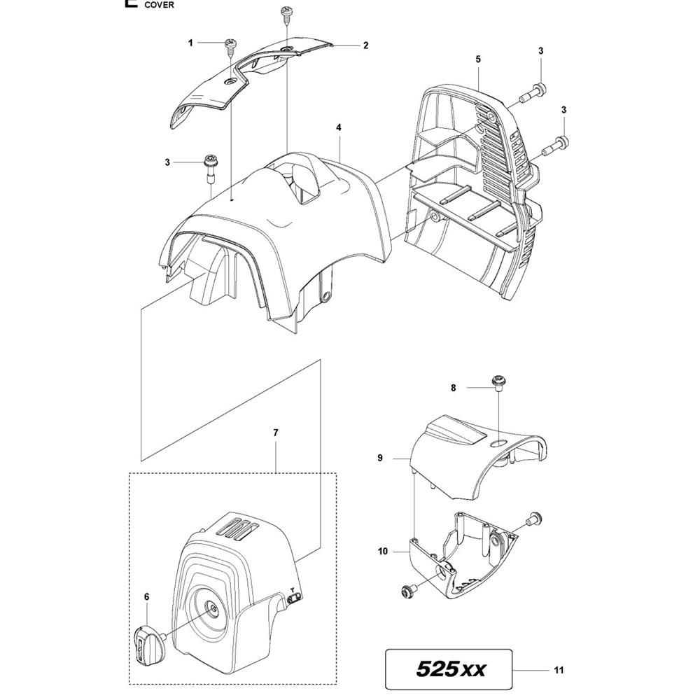 The Cover Assembly for the Husqvarna 525HE4 Hedgetrimmer is designed to protect and house essential components, ensuring optimal performance and longevity. This genuine Husqvarna part helps safeguard the internal mechanisms from debris and wear, contributing to the efficient operation of your hedgetrimmer. Available components may include covers, fasteners, and seals.