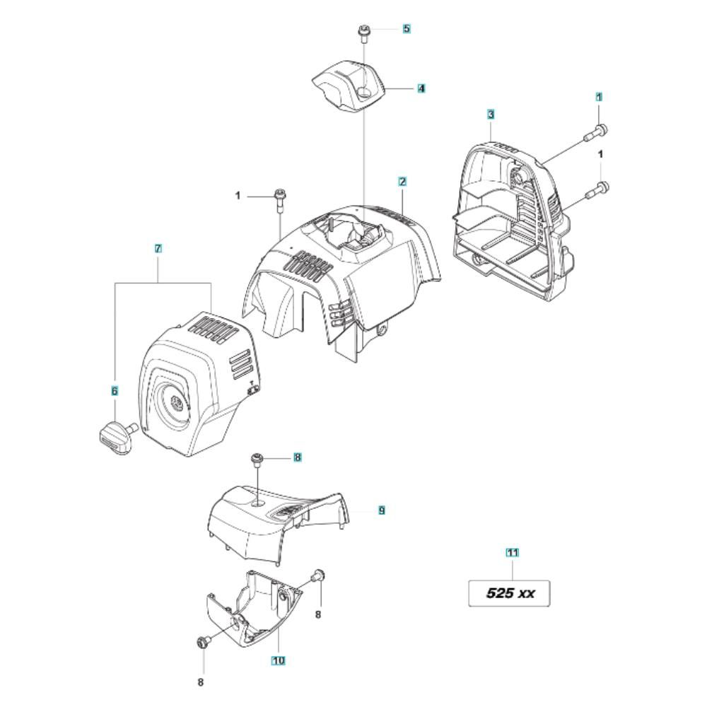 The Cover Assembly for the Husqvarna 525RX Mark II Brushcutter is designed to protect vital components and ensure optimal performance. This genuine Husqvarna part helps safeguard the engine and other internal parts from debris and damage, promoting longevity and reliability. Essential for routine maintenance, it is a key component in maintaining the brushcutter's efficiency.